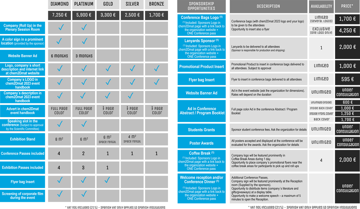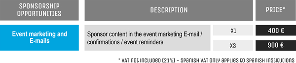 Opportunity for sponsors to hang a banner, place an advert in the event program, landing or registration pages or display their logo. Sponsors will gain more exposure and opportunity for ongoing interaction with attendees.